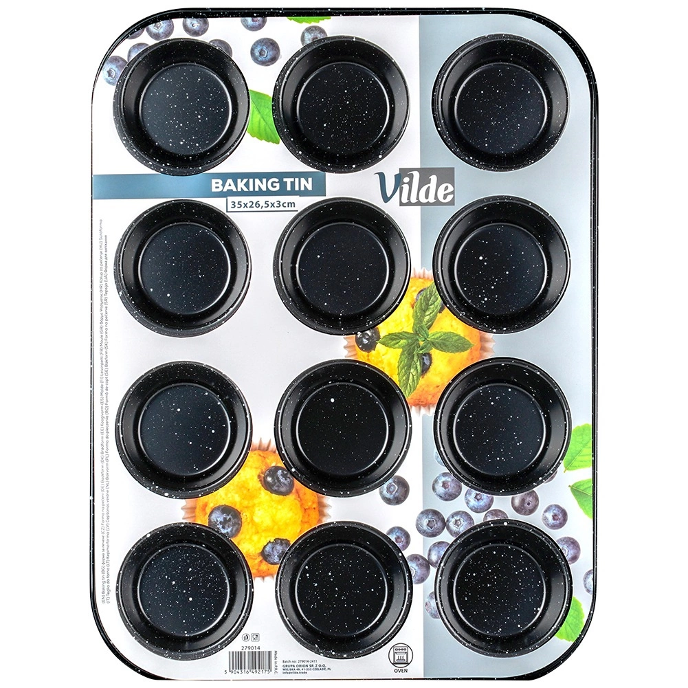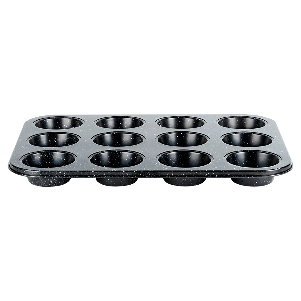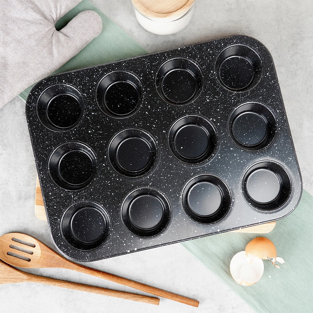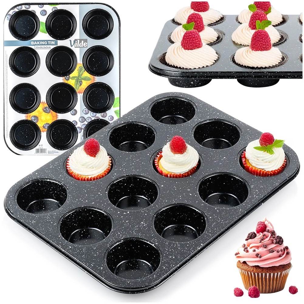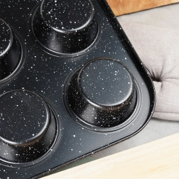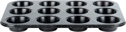 Denne kvalitets muffinforme i robust kulstofstål med granit non-stick belægning er ideel til både søde og salte lækkerier. Den håndterer op til 12 perfekte portioner ad gangen, leder varme effektivt og hjælper med at opnå en jævnt gennembagt midte og sprød kant.