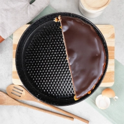 Den sideplacerede spænde gør det hurtigt at åbne formen og nemt at tage den færdigbagte bund ud uden at beskadige kanterne.