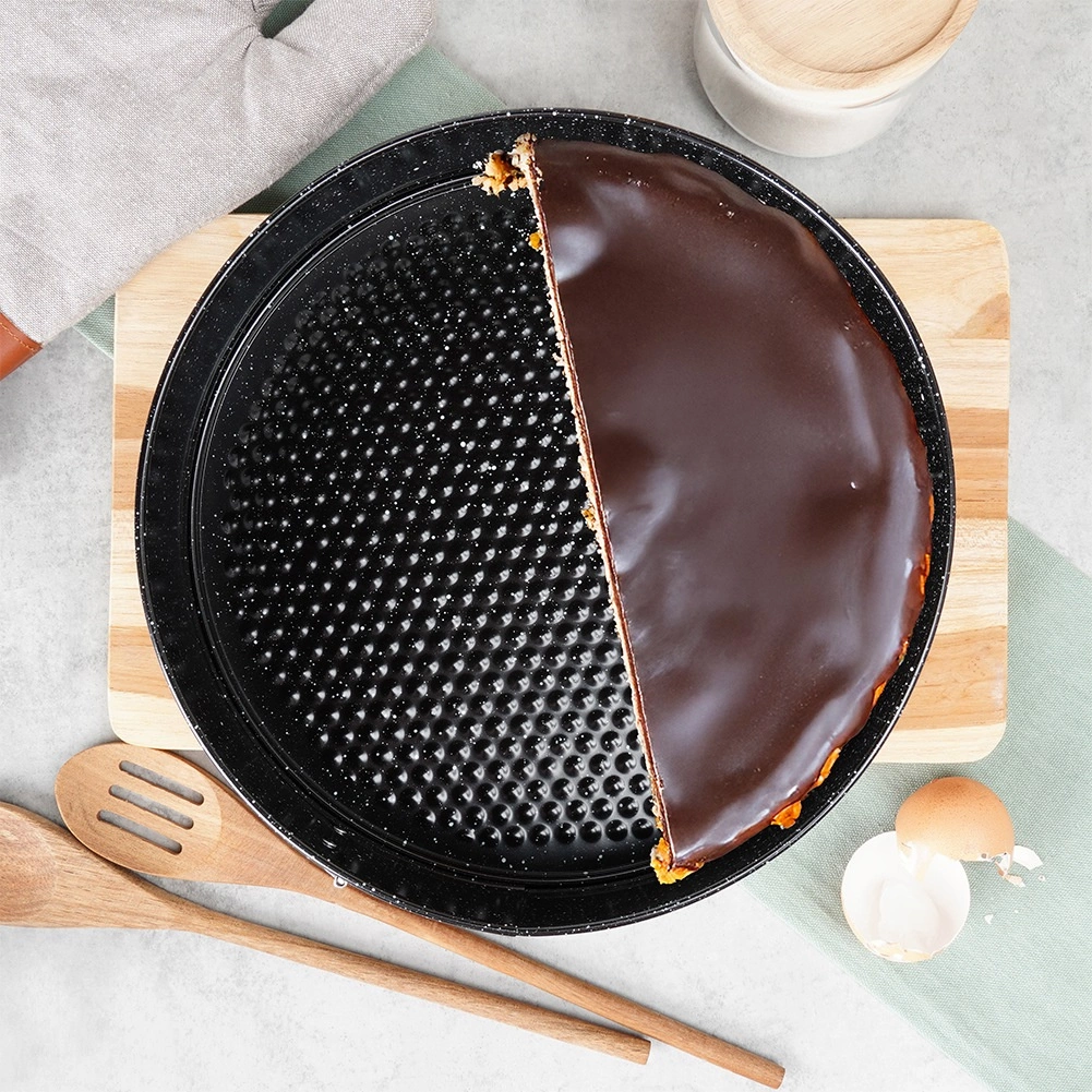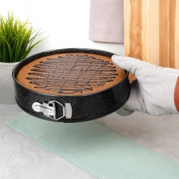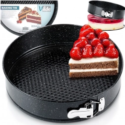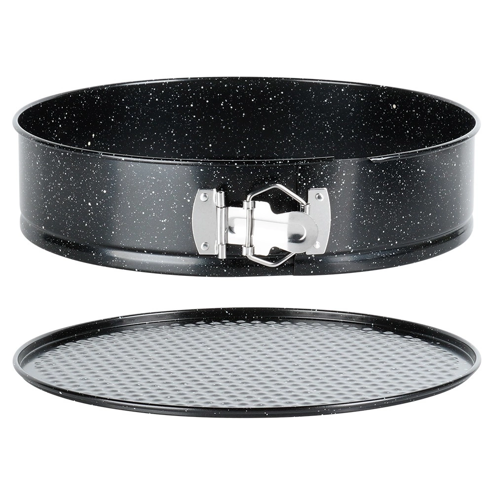 Denne kvalitets springform i granitlook af kulstofstål er designet til daglig bagning med resultater på professionelt niveau. Den nonstick granitbelægning minimerer brugen af fedt og forhindrer fastbrænding, mens de solide vægge med udløselig lås gør det let at frigive kagen uden at ødelægge formen.