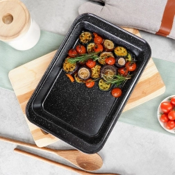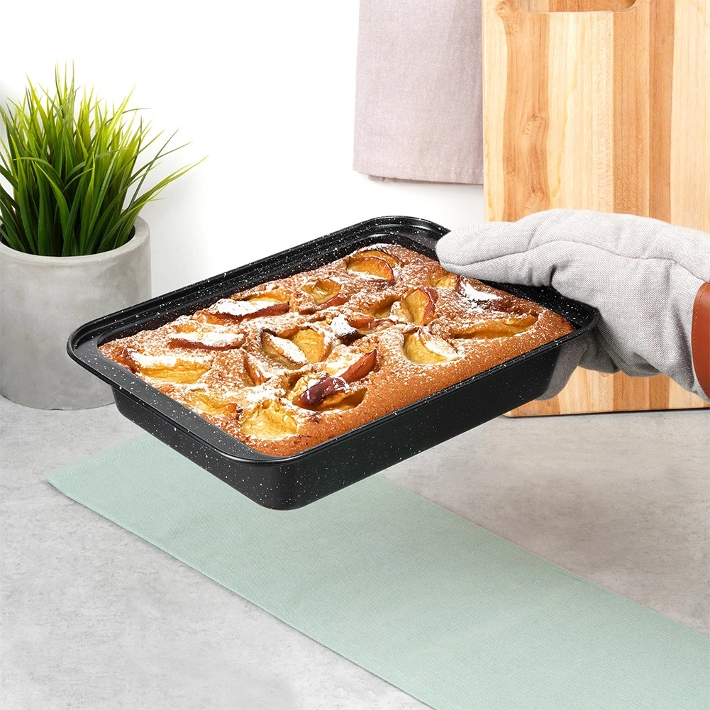 Denne granit bradepandeform kombinerer stærkt kulstofstål og en robust granitoverflade for perfekte resultater ved hver bagning. Den nonstick-belagte overflade minimerer behovet for fedt, forhindrer påbrænding og gør rengøringen markant nemmere.