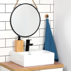Den runde bambusbase kombineret med en sort metalpind giver interiøret et moderne, elegant udtryk og passer perfekt til både badeværelse og køkken.