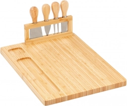 Dette elegante 5-delte sæt kombinerer et naturligt bambus skærebræt med rille til kiks eller nødder og en praktisk holder til værktøjer. Blade i rustfrit stål og træhåndtag giver komfortabel og præcis skæring af hårde, halvfaste og bløde oste. Sættet er en fremragende gave og en smuk detalje på ethvert bord.