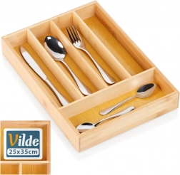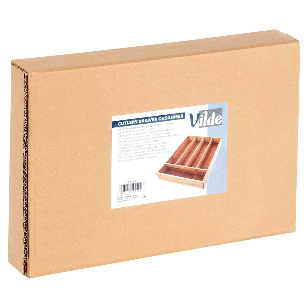 Denne praktiske organizer af kvalitets bambustræ holder dit bestik, dine knive og små køkkenredskaber på deres plads. 5 gennemtænkt opdelte sektioner gør hverdagsmadlavningen lettere og giver hurtig adgang til ofte anvendte genstande.