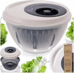 Praktisk salatslynge ELA med kapacitet på 4,5 l tørrer salatblade, krydderurter og frugt hurtigt og skånsomt. Takket være hånddrevet mekanisme i låget og slidstærk plast får du på få sekunder sprød, tør salat uden vandrester. Skålen kan bruges separat, og indsatsen fungerer som en si.