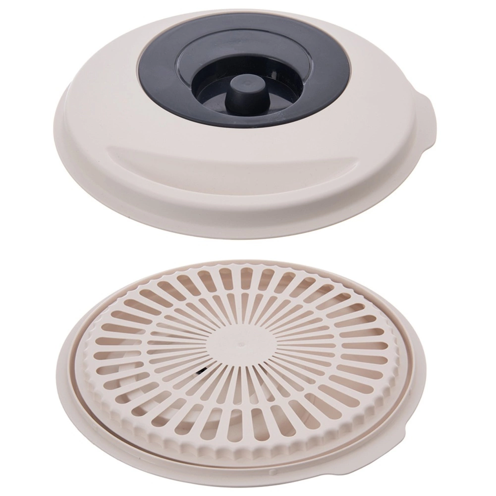Aftageligt låg, ventileret kurv og gennemsigtig skål – perfekt kontrol over tørringen og nem rengøring.