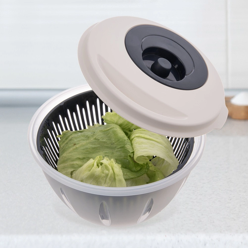 Den manuelle mekanisme i låget sætter kurven i rotation og fjerner overskydende vand på et øjeblik for sprøde blade uden dråber.
