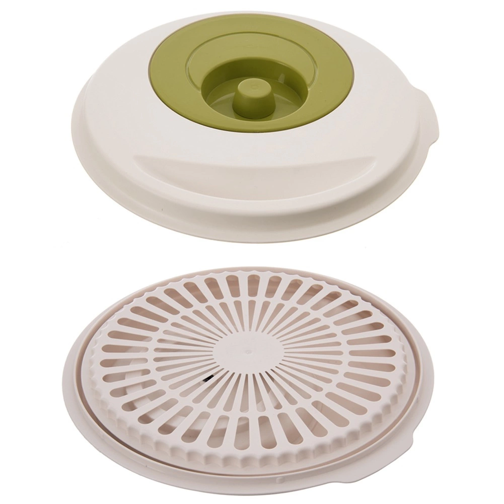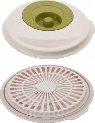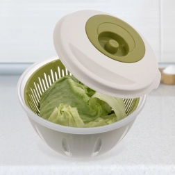 Den manuelle drejemekanisme i låget sætter den indre kurv i rotation og fjerner på få sekunder overskydende vand fra bladene for perfekt sprøde salater.