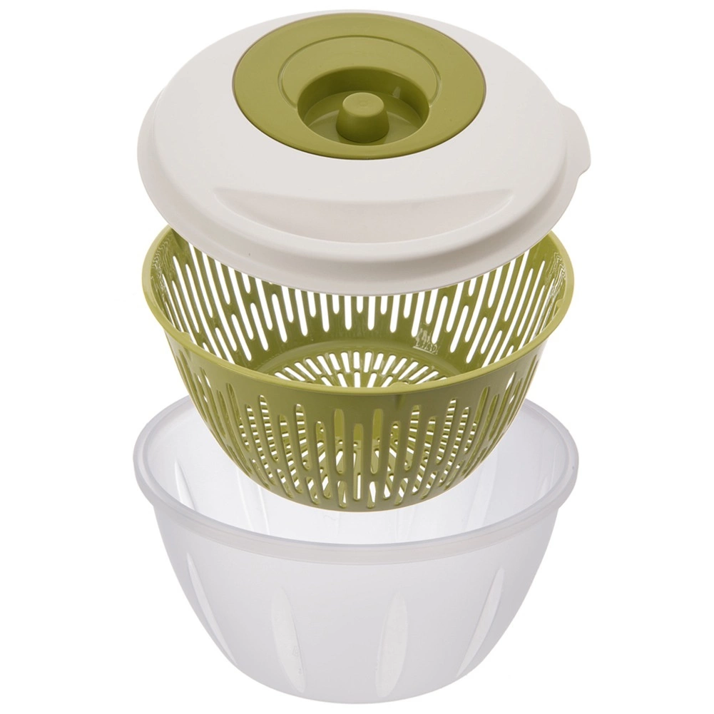 Den alsidige anvendelse er nyttig ud over salat – perfekt til spinat, rucola, grønkål samt til skyllet frugt og urter. Skålen kan bruges til servering, og den udtagelige kurv som si. Delene er nemme at tage fra hinanden og rengøre; skålen tåler opvaskemaskine og er varmeresistent op til +95 °C; den kan også bruges i mikroovn.