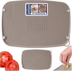 Den særlige profil gør det muligt at lede saft væk i én retning, hvilket minimerer rod på bordet. Den holdbare, fødevaregodkendte plast i beige er let at rengøre og kan vaskes i opvaskemaskinen (tåler op til +95 °C). Takket være ophængshullet kan skærebrættet nemt opbevares og er altid lige ved hånden.