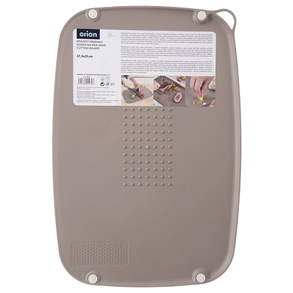 Det praktiske, dobbeltsidede skærebræt ELA tilbyder en stor arbejdsflade og smarte detaljer for behagelig skæring. Den ene side er glat, den anden har pinde til at fikserer råvarer og fine knopper til rivning (f.eks. hvidløg). Takket være afvanding af saft i én retning holder du køkkenbordet rent. Robust udførelse i plast, tåler opvaskemaskine, med praktisk ophængshul. Mål 37,5 × 25 × 1 cm.