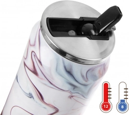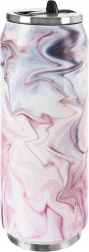 Dåseformen, det pastelfarvede marmormønster og de slanke mål passer i kopholdere. Ideel til arbejde, skole og rejser.