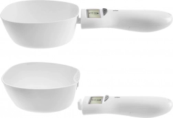 Digital køkkenske med vægt til præcis måling af både tørre og flydende ingredienser direkte ved opøsen. Maks. bæreevne 1 kg, volumen 270 ml, overskuelig LCD-skærm, måling i g/ml/oz/fl oz/cup, TARE-funktion og automatisk slukning. Let, kompakt og ideel til bagning, madlavning og opmåling af foder til kæledyr.