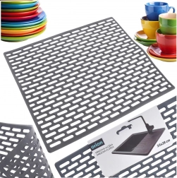 Den gennemtænkte perforerede struktur muliggør fri vandgennemstrømning og forhindrer ophobning. Måtten er let at skylle ren, fleksibel og klæber godt til overfladen. Dens kompakte mål 33 × 28 cm og neutrale udseende passer til både moderne og klassiske køkkener.