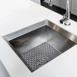Det elastiske materiale tilpasser sig vaskens overflade og holder servicen stabilt på plads takket være den skridsikre overflade.