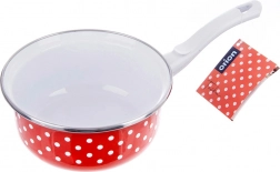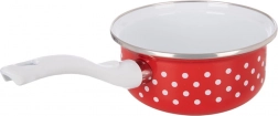 Elegant kasserolle i retrodesign med rød emalje og hvide prikker pynter i dit køkken og tilbyder praktisk anvendelse hver dag. Takket være det lange håndtag ligger den godt i hånden og gør det let at hælde. Emaljen er sundhedssikker og velegnet selv for allergikere.