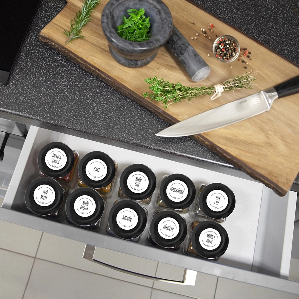 Det minimalistiske firkantede design passer godt ind i ethvert køkken – fra private hjem til professionelle køkkener. Den brede åbning gør det nemt at hælde, fylde og vaske. For endnu bedre organisering kan du supplere med selvklæbende etiketter til mærkning.