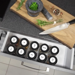 Takket være den brede hals er krydderiglasset nemt at fylde og rengøre. Det passer perfekt i skuffer, på hylder og på køkkenbordet og hjælper med at bevare orden og et elegant udseende i ethvert køkken. Velegnet til både hjem og professionelle køkkener. Kan suppleres med selvklæbende etiketter for enkel mærkning.
