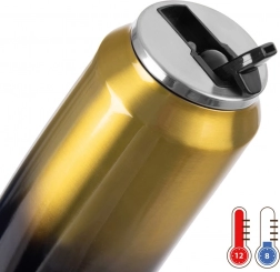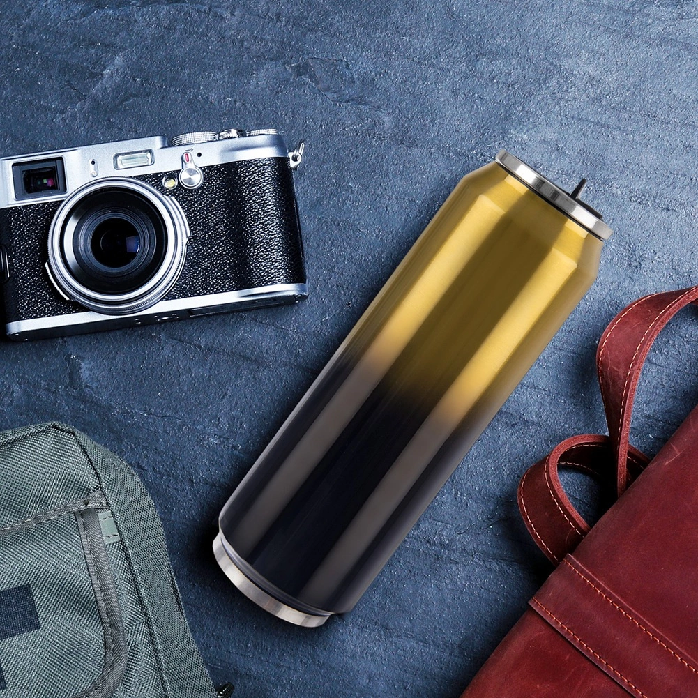 Det elegante termokrus i sort‑gylden ombre kombinerer moderne design og praktiske funktioner. Det er fremstillet af holdbart rustfrit stål med vakuumisolering, som pålideligt holder drikkens temperatur hele dagen. Låget med vippe‑dretud og tætningsring forhindrer læk, så du trygt kan lægge det i rygsæk eller taske.