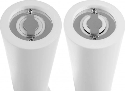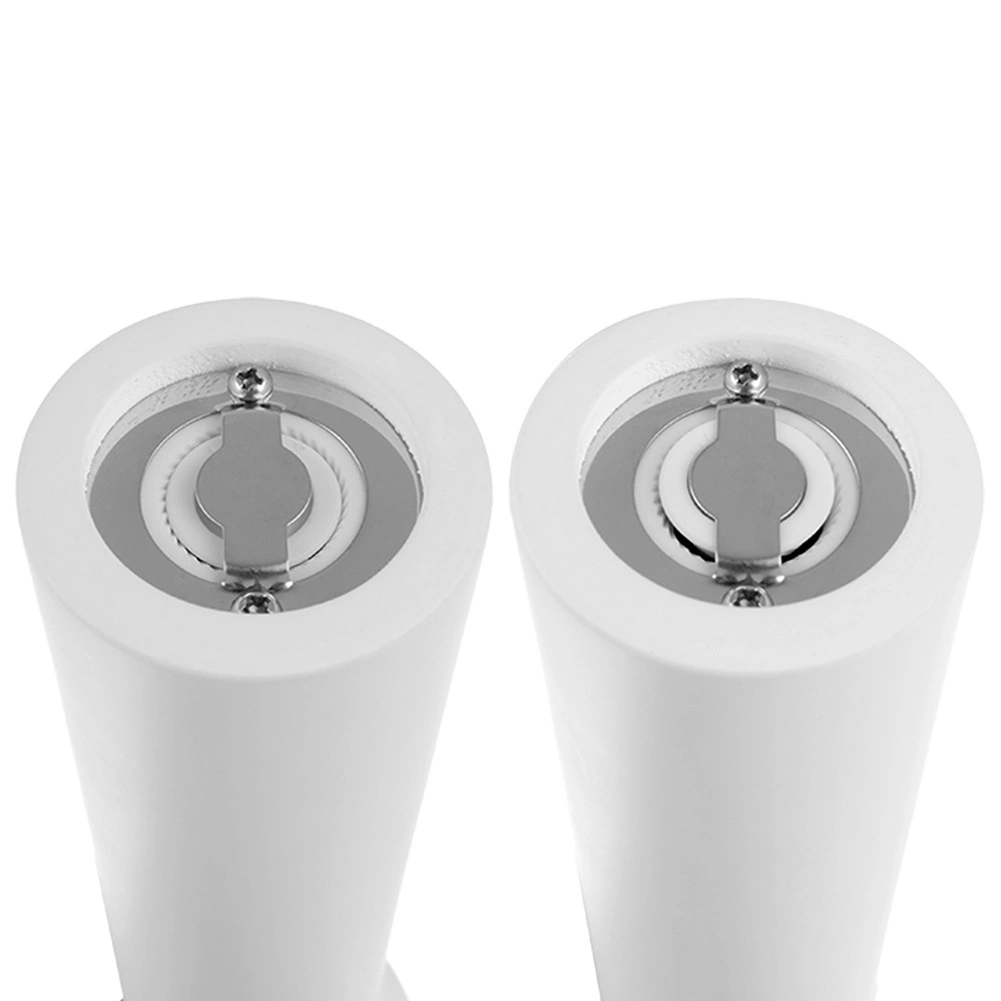 Det øverste metaltrykhjul muliggør hurtig regulering af grovhed fra fin til grov. Den nederste del i rustfrit stål øger holdbarheden ved daglig brug. Den elegante matte overflade i hvid kompletterer både moderne og klassiske køkkener og er velegnet til både hjemmet og professionel drift.