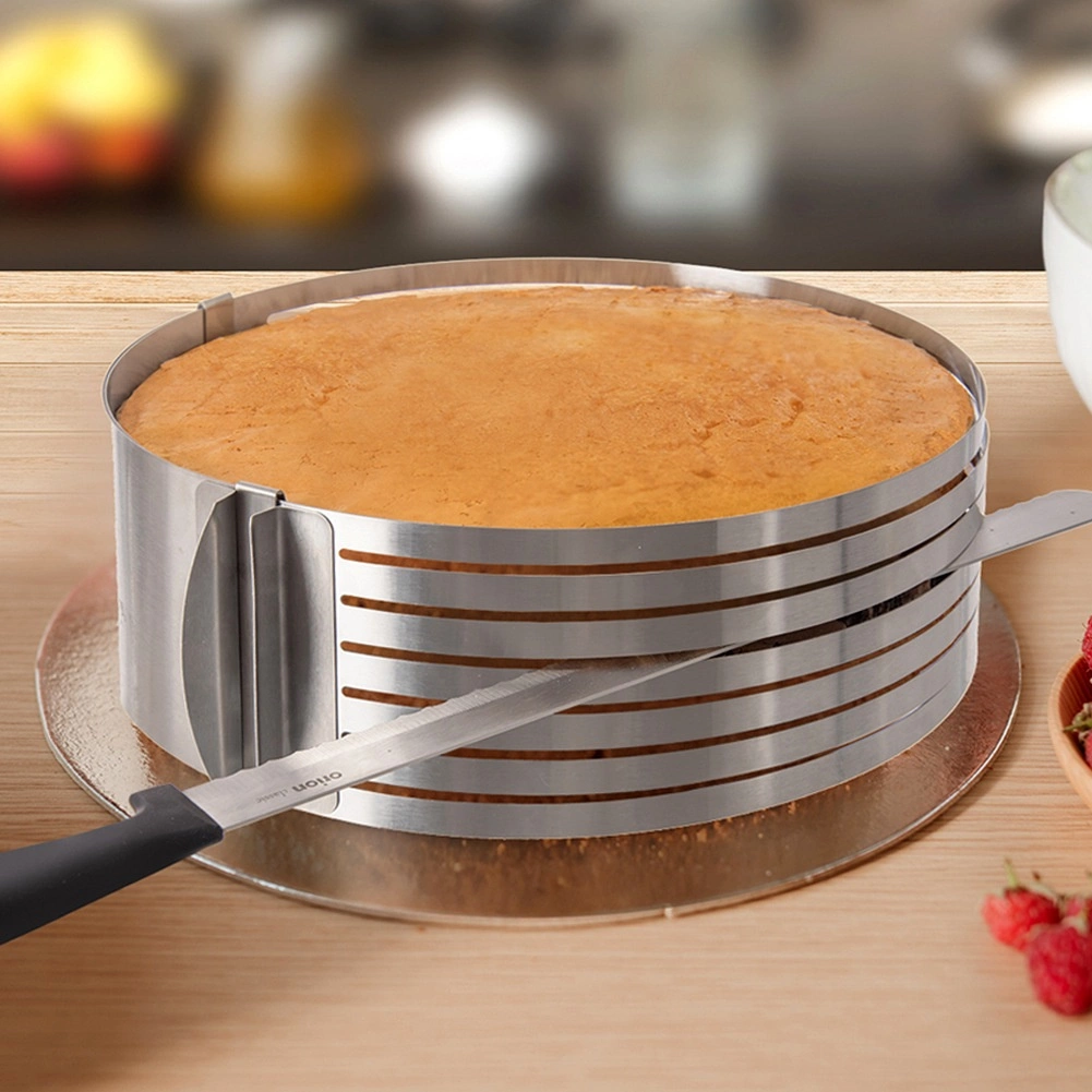 Den rustfri skærering til kagebunde er den ideelle hjælper for bageentusiaster, der vil opnå perfekt lige lag uden besværlig opmåling. Den justerbare klemme gør det muligt nøjagtigt at tilpasse diameteren fra 24 til 30 cm, mens styresporene hjælper med at føre kniven i ét plan.