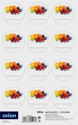 Praktisk sæt med 36 selvklæbende etiketter til glas med en diameter på 3,5 cm, som gør det nemt at mærke hjemmelavede syltevarer, krydderier og flasker. Selvklæbende formel sikrer nem påføring uden lim, og lamineret papir med frugtmotiv er robust og ser elegant ud. Hver etiket har plads til beskrivelse (navn, ingredienser, dato), så den hjælper med organisering af køkken og spisekammer. Originalt produkt fra mærket ORION.