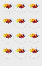 - Læsbare og elegante – skrivefeltet gør det muligt at angive navn, dato eller ingredienser; frugtmotivet giver dine hjemmelavede produkter et dekorativt look.