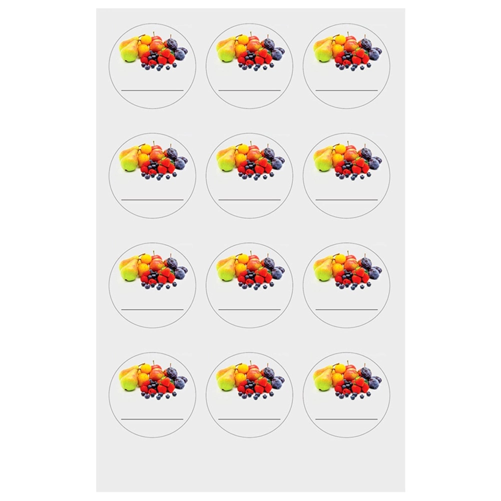Hold orden i spisekammeret og køkkenskabene med stilfulde etiketter med frugtmotiv. Runde klistermærker med en diameter på 3,5 cm fæstner let på glas, flasker og krydderiglas og forvandler dem til overskueligt mærkede forsyninger. Det laminerede papir giver bedre modstand mod slid og længere holdbarhed.