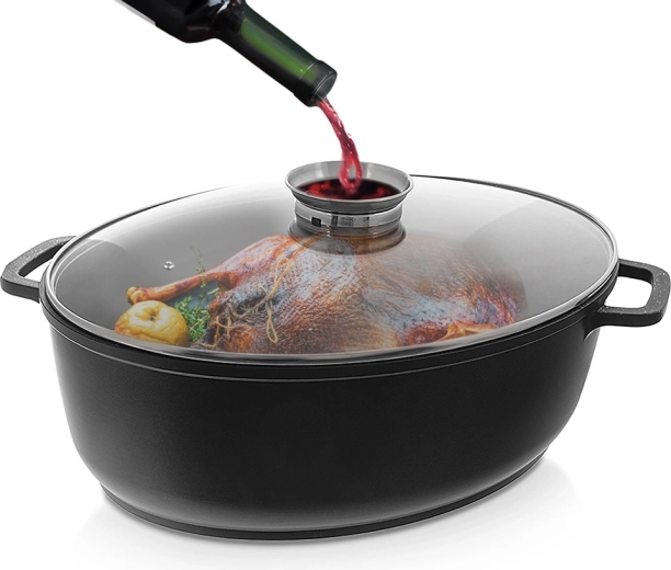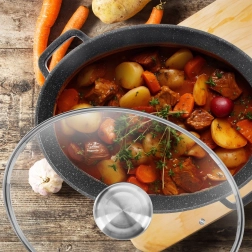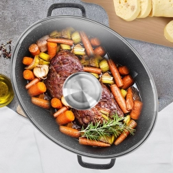 Takket være volumen på 12 liter kan du nemt tilberede større portioner – fra helstegt gås til en ordentlig oksesteg. Bradepanden er velegnet til ovn (krop op til 230 °C, med glaslåg op til 200 °C) og til alle typer kogeplader inklusive induktion. Efter madlavning kan den nemt vaskes i opvaskemaskinen.
