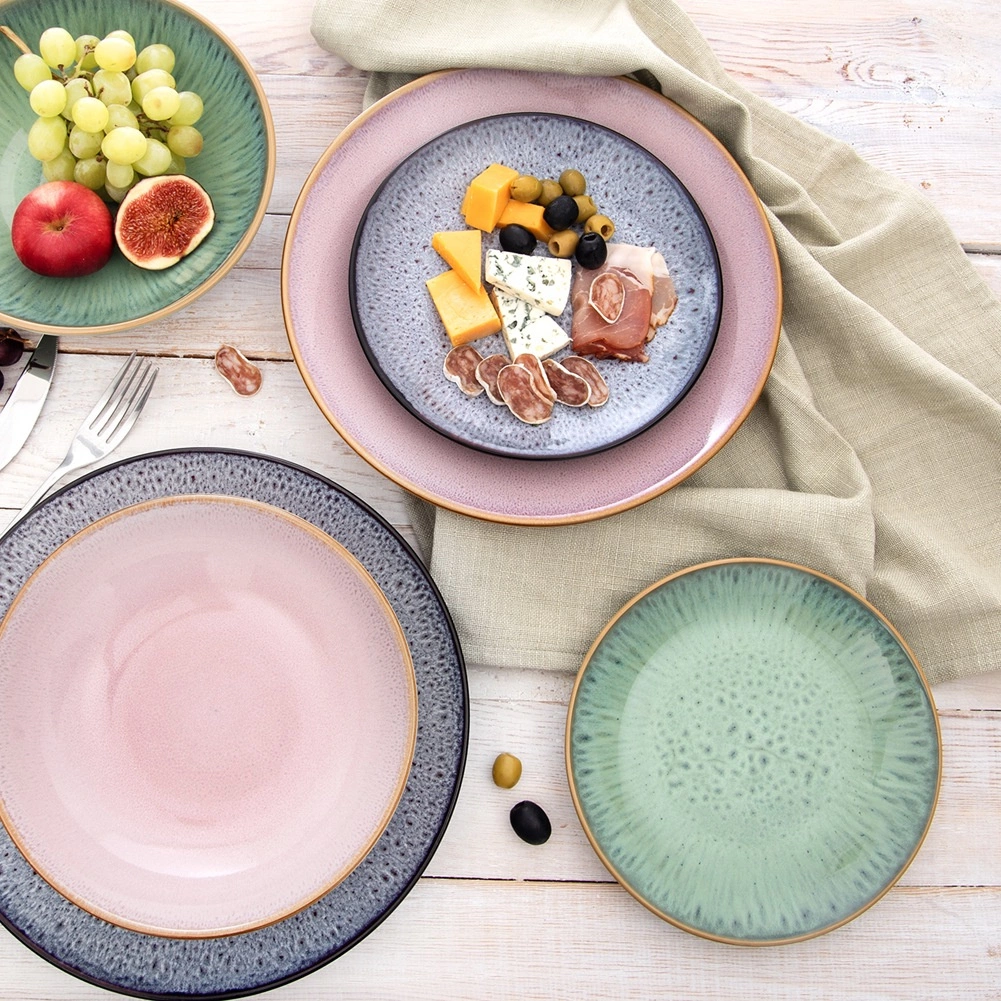 Den stilfulde keramiske desserttallerken 20,5 cm fra Glaze-kollektionen giver din borddækning et moderne præg. Den grønne glasur med subtilt, effektfuldt kropmønster og kontrastkant virker elegant og er nem at kombinere med andet service.