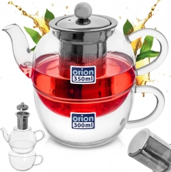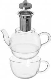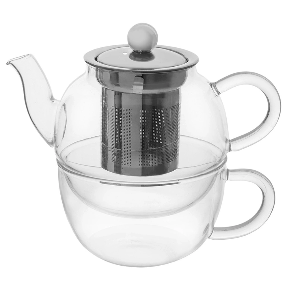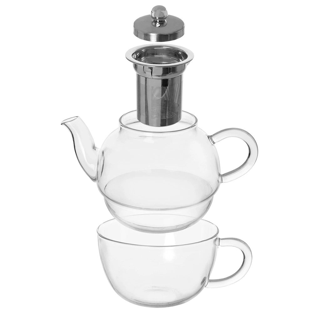 Dette 2-delte sæt kombinerer en glastekande på 350 ml med et krus på 300 ml, som praktisk kan opbevares stablet i hinanden. Tekanden er udstyret med en fin si i rustfrit stål til nem udtrækning af løs te og urter, og det gennemsigtige glas giver kontrol over infusionens intensitet.