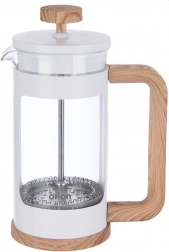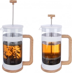 Elegant glas-french press med en kapacitet på 400 ml til tilberedning af kaffe, te og urtete. Kombinerer borosilikatglas med trælook-detaljer og hvid ramme. Udstyret med fint rustfrit stålsi for en ren drik uden grums, ergonomisk hank og præcis hældetud for nem servering. Glaskanden er egnet til opvaskemaskine. Dokumenteret kvalitet fra ORION.