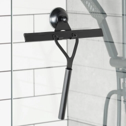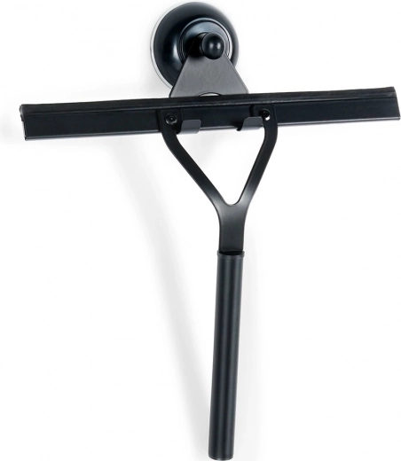 Holderen med sugekop gør det muligt hurtigt at hænge skraberen på glas eller fliser – en praktisk og æstetisk løsning til enhver badeværelse.