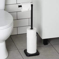 Stativet sikrer orden og let adgang til papiret – reserveruller kan opbevares direkte på den lodrette pind ved basen. Den stabile, kvadratiske og vægtede base med skridsikring holder stativet sikkert på plads, også på glatte fliser. Takket være de kompakte mål er det ideelt selv til mindre badeværelser og toiletter.