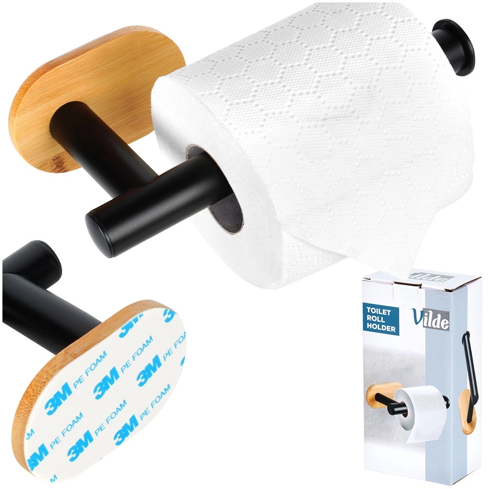 Praktisk toiletpapirholder, der forener holdbart rustfrit stål med en elegant bambusbase, perfekt til moderne badeværelser. Det selvklæbende 3M-system giver en stærk fastgørelse uden boring, så installationen er hurtig og ren.