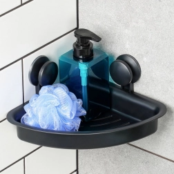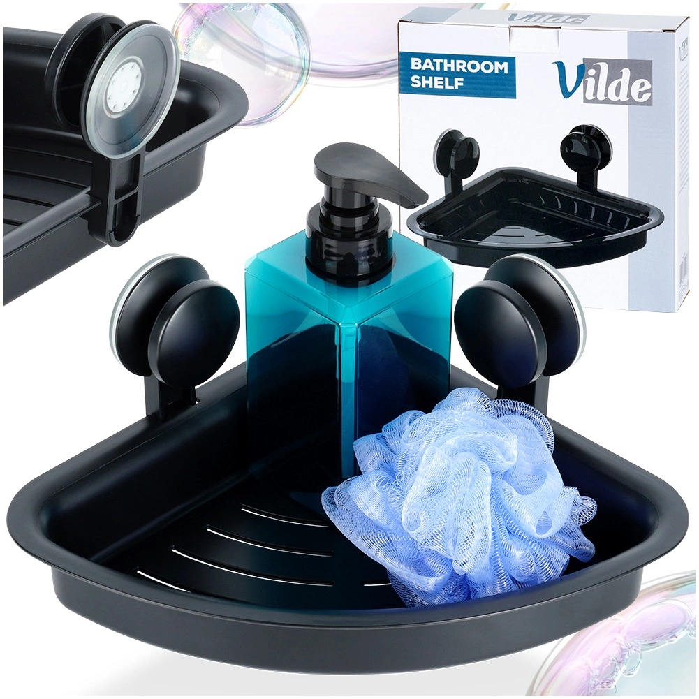 Denne hjørnehylde til brusebadet er en fremragende løsning til ethvert badeværelse. Med to stærke sugekopper monteres den på et øjeblik uden værktøj og boring, hvilket beskytter fliser og glas mod skader. Den matte sorte farve virker elegant og er nem at matche med moderne badeværelsestilbehør.
