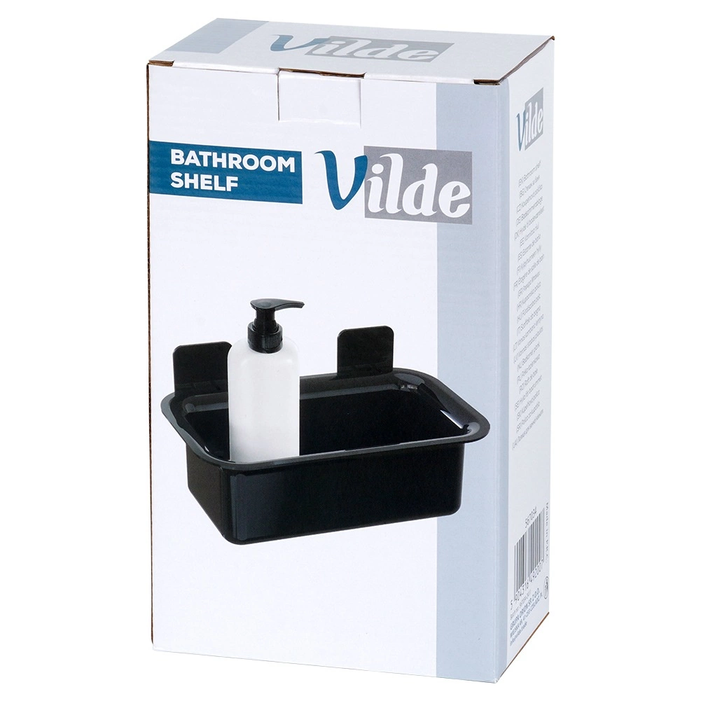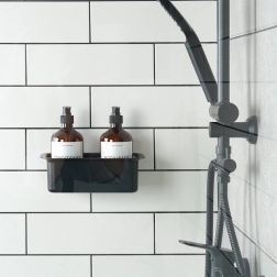 Hold orden i brusenichen og ved håndvasken. Denne elegante sorte hylde giver et sikkert sted til shampoo, showergels, svampe og små kosmetikartikler. Takket være kvalitetsplast er den let at rengøre og modstår fugt og daglig brug.