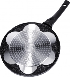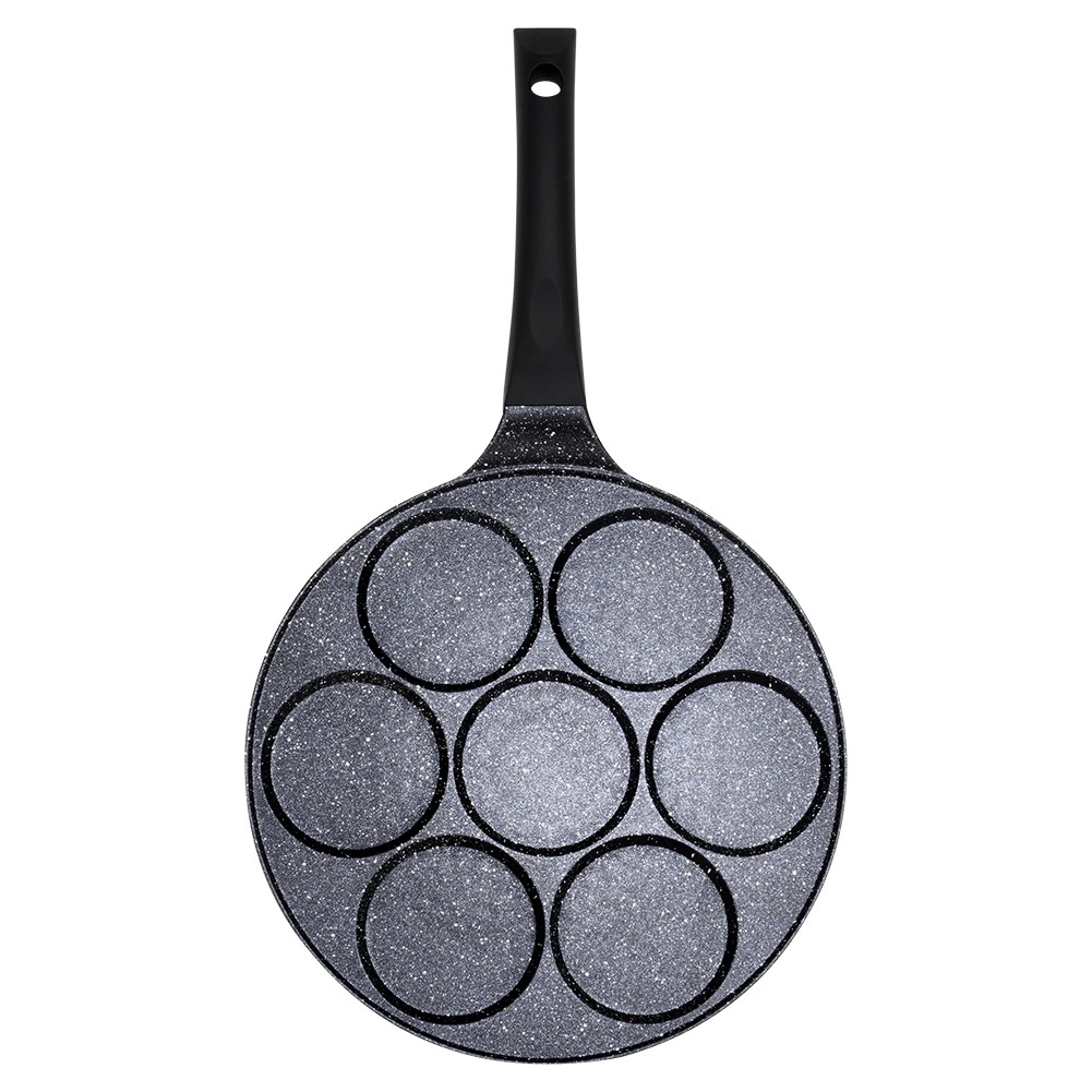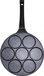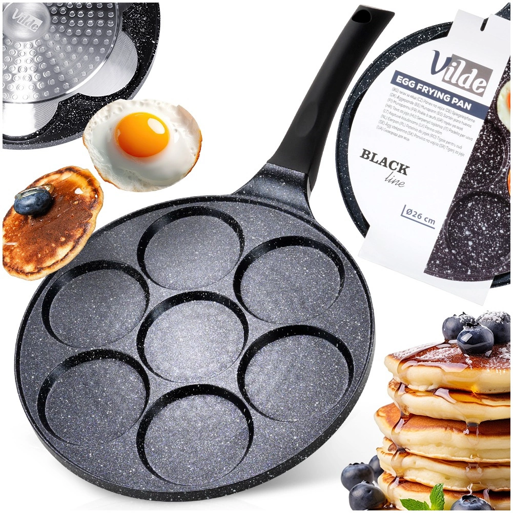 Oplev den elegante pande fra BLACK LINE-serien, som sikrer perfekt ens portioner og en flot rund form til morgenmaden. Takket være de 7 forme tilbereder du på én gang æg, rösti eller pandekager til hele familien. Det robuste aluminium med non-stick granitoverflade reducerer fastbrænding og gør rengøringen lettere, mens den hurtige og jævne varmefordeling forkorter tilberedningstiden.