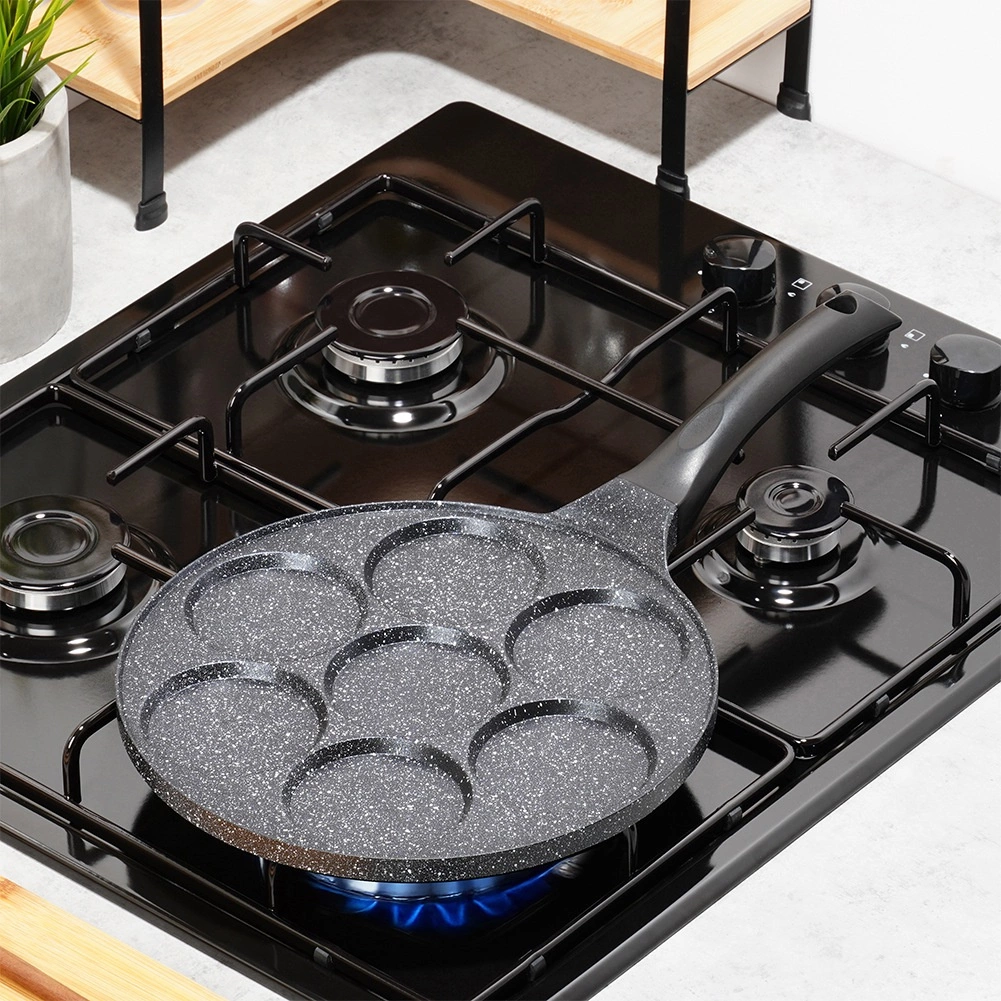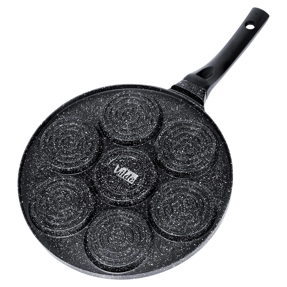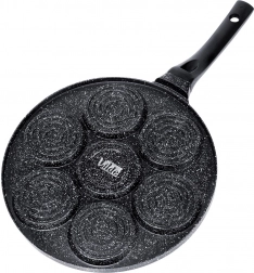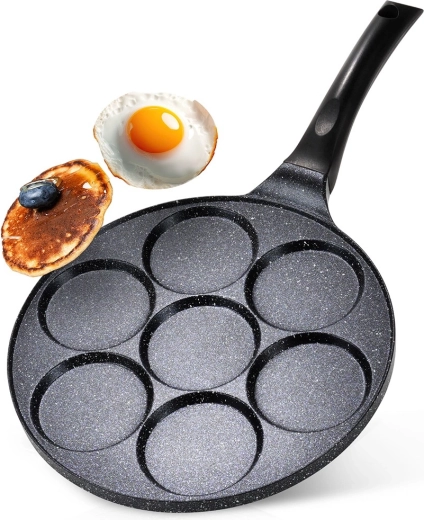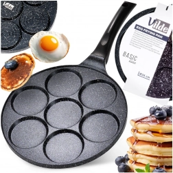 Nyd hurtige og nemme morgenmåltider med en pande, der holder portionerne perfekt formede. Syv separate rum med en diameter på 8 cm sikrer jævn tilberedning og flot runde portioner – fra spejlæg til luftige pancakes. Takket være den granitbaserede non-stick overflade brænder maden ikke på, og der skal kun bruges et minimum af olie.