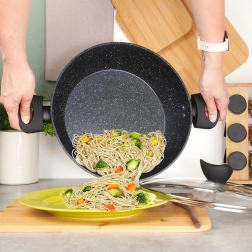 Den særlige granitlag minimerer fastbrænding og gør det muligt at tilberede med mindre olie. Maden slipper let, og panden er hurtig at rengøre.