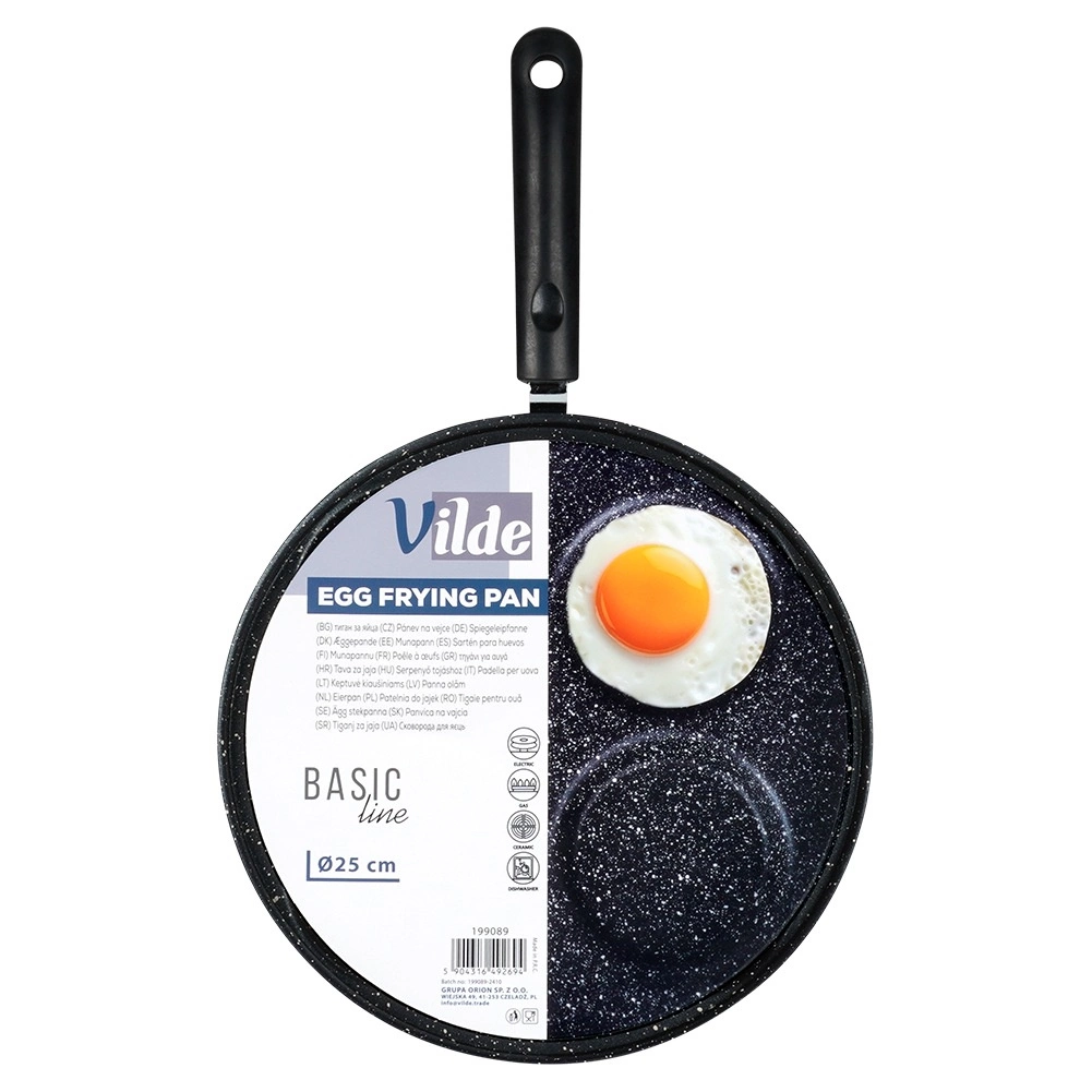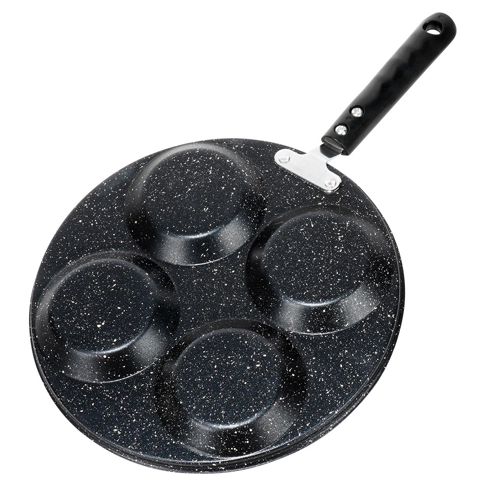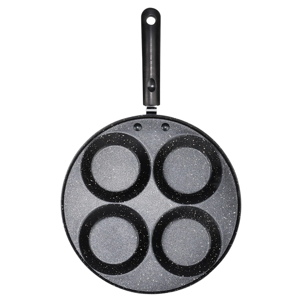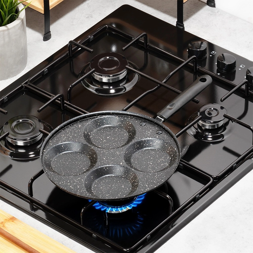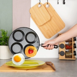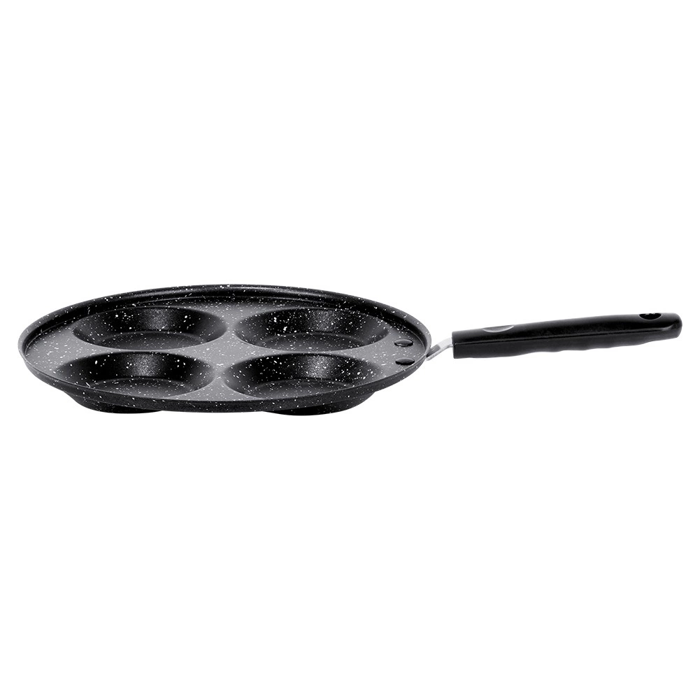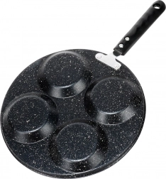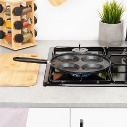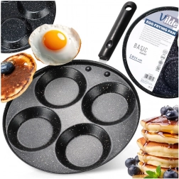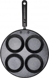 Denne granitpande med 4 runde forme er ideel til tilberedning af æg, små pandekager og mini-crêpes i en perfekt ensartet form. Den sparer tid og energi: materialet leder varmen fremragende og sikrer jævn stegning uden fastbrænding.