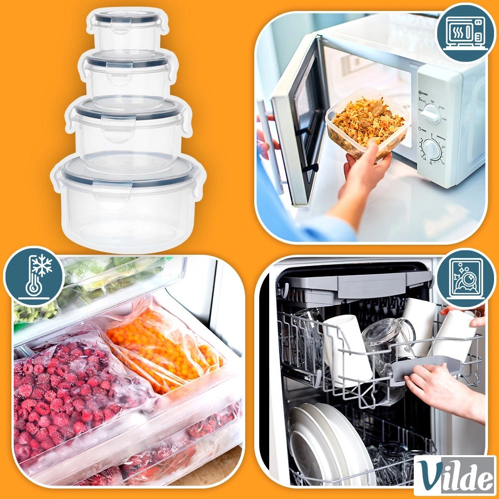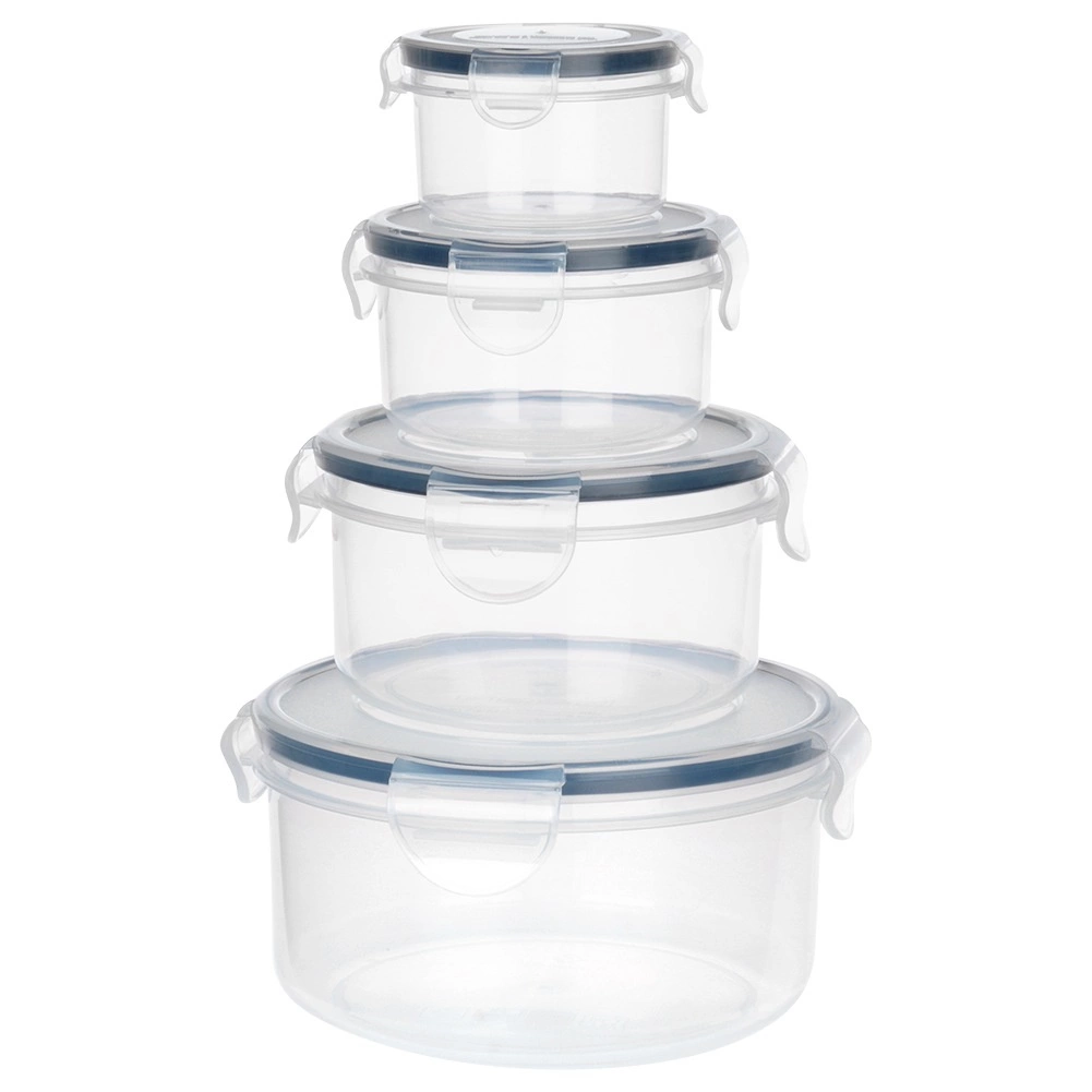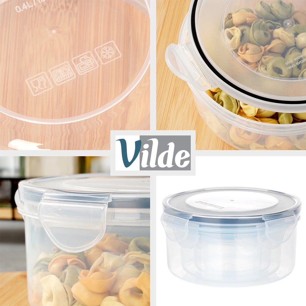 Med dette alsidige sæt runde beholdere opbevarer du nemt snacks, madrester og tørvarer. Det klare design giver hurtig kontrol af indholdet uden at åbne, og de forskellige størrelser skaber orden i køkken og køleskab. Beholderne kan sættes i hinanden for at spare plads.