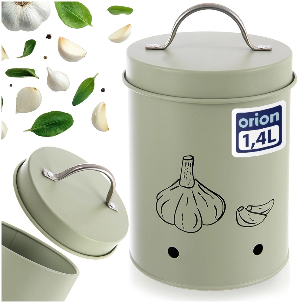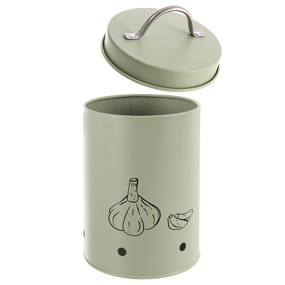 Takket være de kompakte mål passer beholderen nemt på køkkenbordet eller i spisekammeret. Den pastelgrønne udgave med sølvfarvet håndtag passer perfekt ind i både moderne og rustikke køkkener. Hvidløgs-grafikken gør det nemt hurtigt at skelne indholdet fra andre dåser.