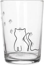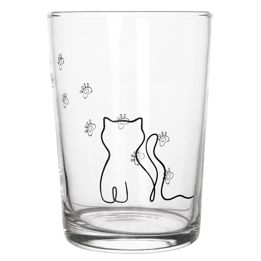 Dette store glas med tryk af en kat og poteaftryk vil glæde både børn og voksne. Takket være den universelle kapacitet på 500 ml er det perfekt til både kolde og varme drikke, fra vand og hjemmelavet limonade til kakao eller te. Den robuste udførelse i tykt glas sikrer lang holdbarhed og behagelig daglig brug.