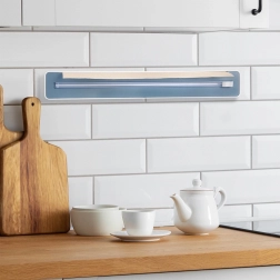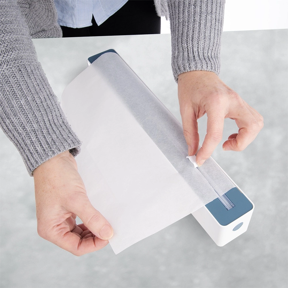 Hold køkkenet perfekt organiseret med en elegant dispenser, der kombinerer hurtig opmåling, ren skæring uden flossede kanter og bekvem opbevaring af ruller. Den integrerede skinne med skarpt blad skærer jævnt og lige, mens de indvendige stoppere forhindrer rullen i at flytte sig.