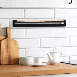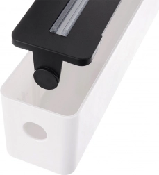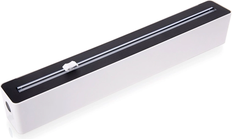 Hold køkkenet organiseret og arbejdet effektivt. Dispenseren til film i elegant sort-hvid opbevarer rullen sikkert og skærer nemt den ønskede længde takket være den præcise klinge. Den lette og robuste konstruktion er nem at rengøre og klar til daglig brug.