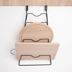 Hold køkkenet ryddeligt og udnyt hver centimeter. Denne robuste lågholder med kapacitet til op til 6 stk. hænges nemt på køkkenskabslåger (op til ca. 2,5 cm i tykkelse) eller skrues fast på væggen. Minimalistisk loft-design i sort matcher både moderne og klassiske køkkener.