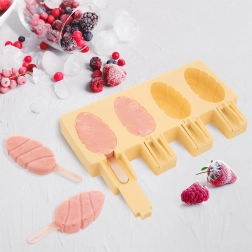 Formen har fire hulrum på cirka 7 × 4 cm, så du nemt kan lave en portion hjemmelavede ispinde til hele familien.