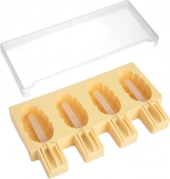 Denne praktiske silikoneform i en blid gul farve er ideel til daglig tilberedning af hjemmelavede ispinde og frosne desserter. Du laver fire portioner ad gangen, og takket være det gennemsigtige låg kan formene stables sikkert og bæres rent til fryseren uden spild.