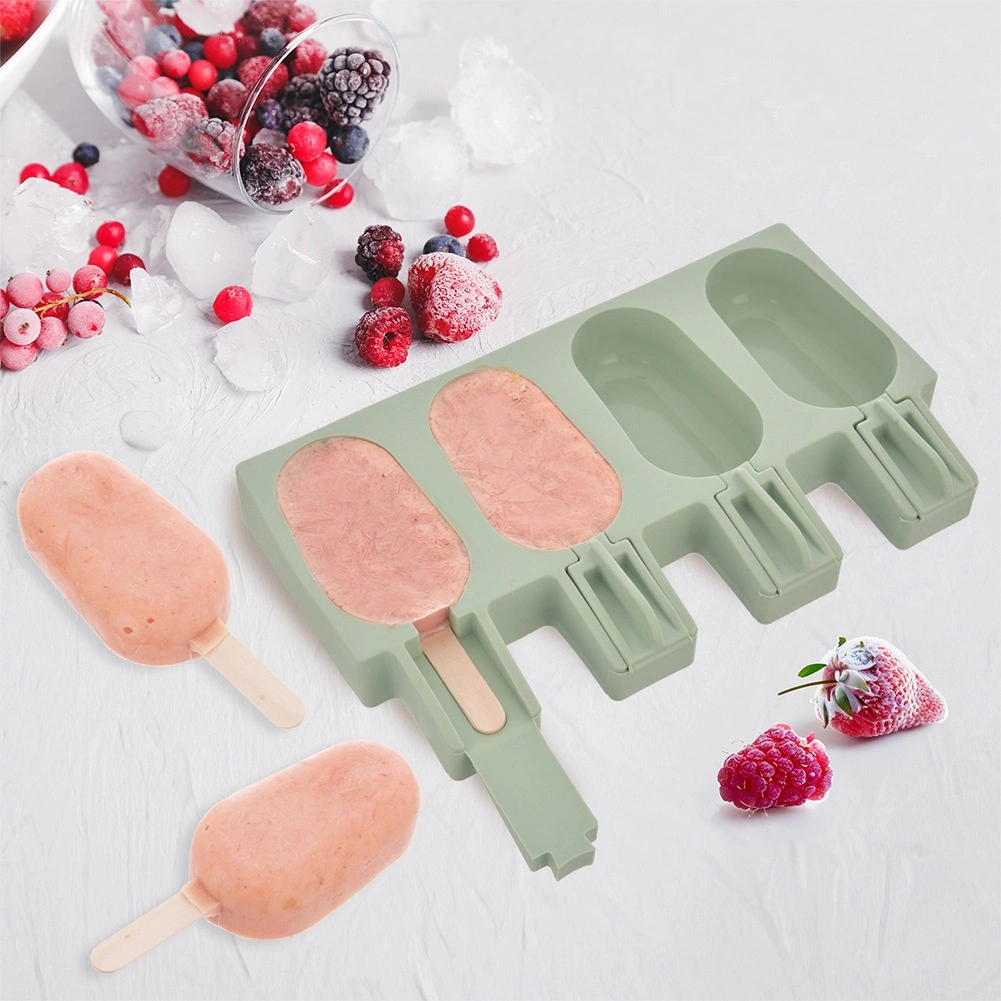 Formen har fire separate kamre med riller til pinde, så du kan lave flere smagsvarianter samtidig og uden rod.