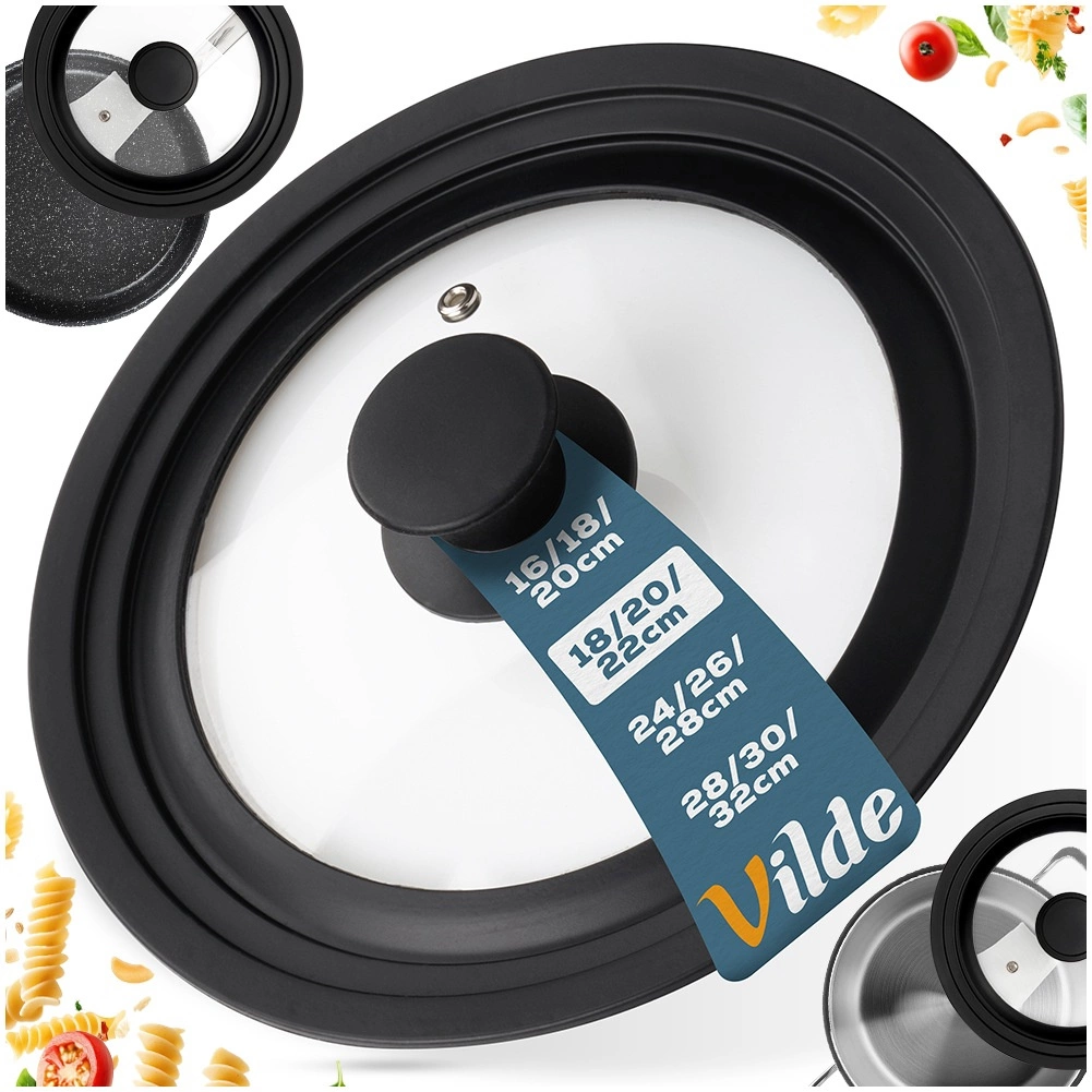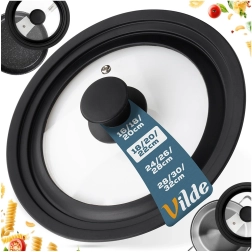 Det universelle Vilde-låg kombinerer robust hærdet glas med en fleksibel silikonekant, som slutter tæt og beskytter gryders og panners kanter. Det transparente glas giver overblik uden at løfte låget, hvilket sparer tid og energi. Den integrerede dampeventil leder effektivt overskydende damp væk og hjælper med at forhindre overkog.